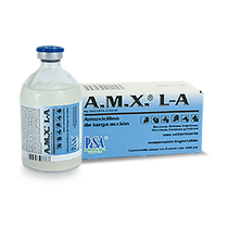 A.M.X.® L-A es una fórmula de larga acción de Amoxicilina diseñada para mantener concentraciones terapéuticas por 36 a 48 horas postaplicación. Indicado para el tratamiento de los bovinos (productores de carne y leche), ovinos y caprinos en las infecciones del aparato respiratorio, de la glándula mamaria, genitourinarias, del sistema nervioso, del aparato locomotor, digestivas y septicémias, producidas por gérmenes sensibles a la Amoxicilina; gérmenes Gram positivos y Gram negativos, como son: Staphylococcus spp., Streptococcus spp., Escherichia coli, Salmonella spp., Pasteurella spp., Clostridium spp., Corynebacterium spp., Fusobacterium spp. y Bordetella.