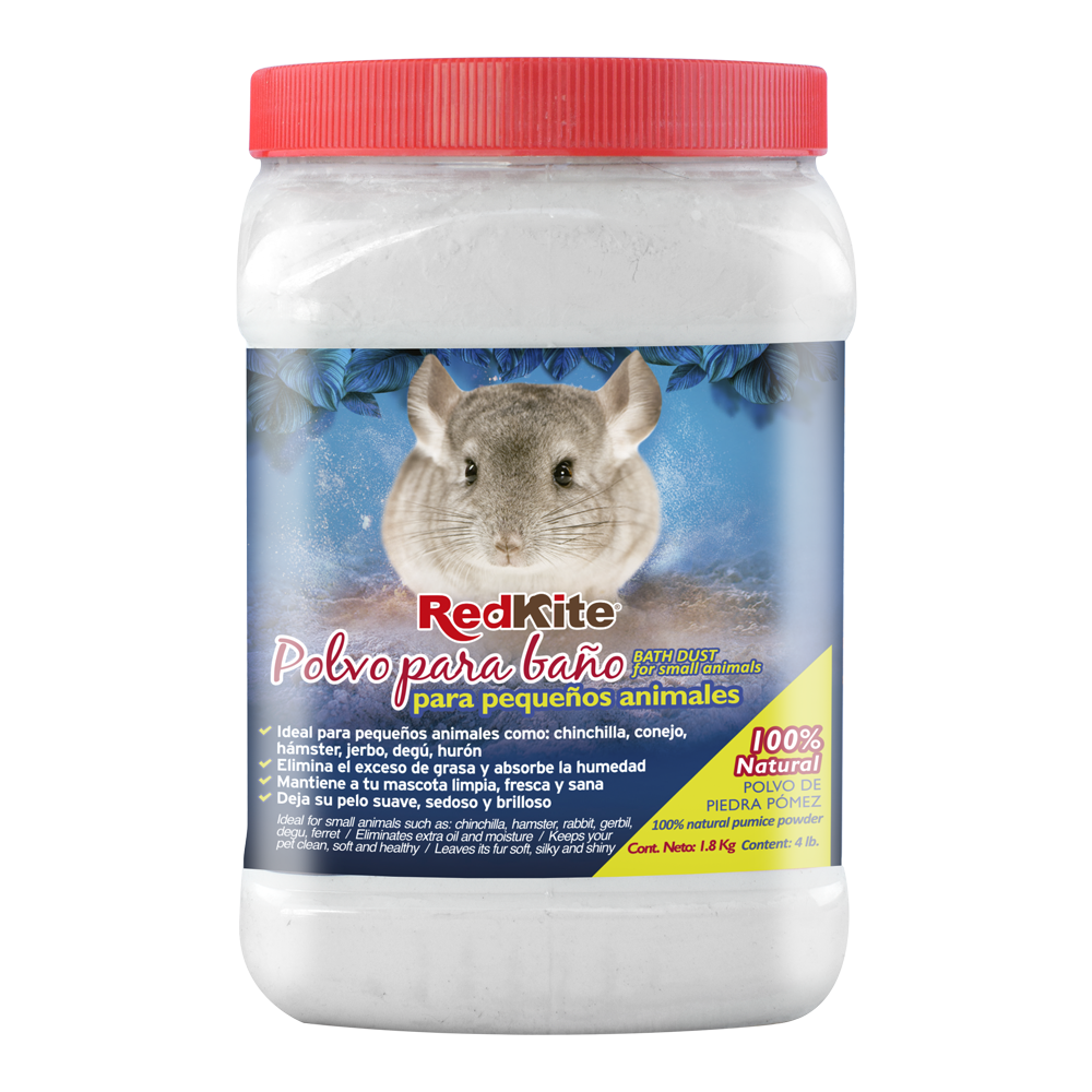 Características: Descripción: Polvo para baño de pequeños mamíferos RedKite® (1.8 kg) Características: El polvo RedKite® es el perfecto auxiliar para la higiene de tu mascota: limpia su pelaje, elimina el exceso de grasa y absorbe humedad. Al ser un polvo fino, penetra de manera más eficaz en el pelaje denso, otorgando sedosidad y brillo, al mismo tiempo que cuida la piel y la salud de tu mascota. Ideal para la higiene de pequeños animales como: chinchilla, conejo, hámster, gerbo, degú, hurón.
