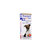 RAMIPRIL PLUS 10 NRV* es un Inhibidor de la Enzima Convertidora de la Angiotensina (IECA) que actúa como vasodilatador mixto el cual está indicado para el tratamiento de la la Insuficiencia Cardiaca Congestiva causada por Insuficiencia Valvular (Endocarditis) o Cardiomiopatía en Perros.